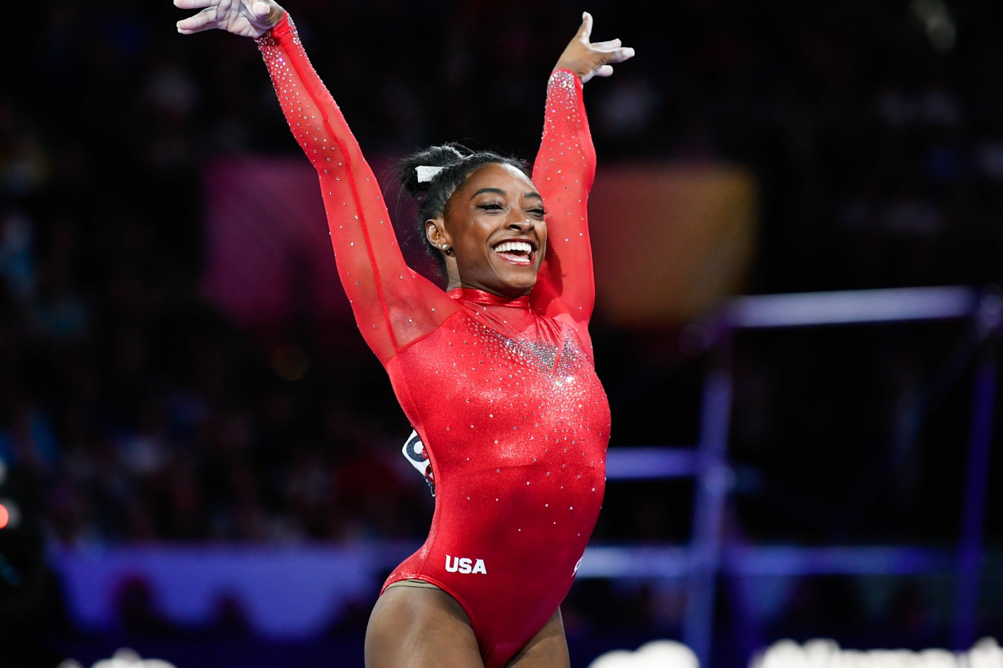 Olympic Champion. The most talented gymnast of all time. The most decorated American gymnast. The first woman gymnast to earn three consecutive World All-Around titles. Legend. Superstar. Strong girl.